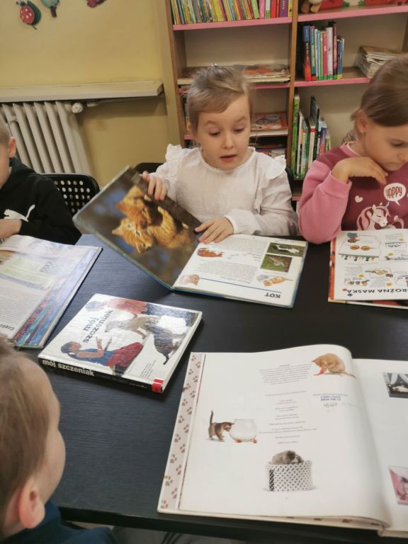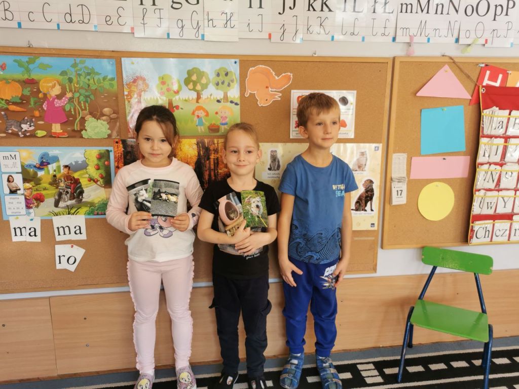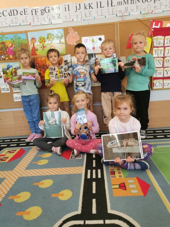 Dzieci przyniosły zdjęcia swoich domowych zwierzątek. Wykazały się ogromną wiedzą na ich temat. Bardzo chętnie i wyczerpująco odpowiadały na zadawane im pytania.